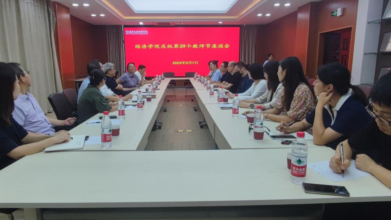 为迎接第39个教师节,2023年9月7日下午,永利集团3044官网欢迎您经济学院在蒲河校区则行楼133会议室召开了教师节座谈会。经济学院党委书记吴建利教授,党委副书记、院长李政教授,副院长和军教授、张丹宁教授,校党委常委、原宣传部长杨志安教授,经济学部副主任谢地教授,经济学系张桂文教授,退休教师代表陈瑾玫教授,以经济学部办公室主任、应用经济学一流学科建设办公室主任孔晓副教授等10余名青年教师代表和行政管理团队代表参加了座谈会。座谈会由张丹宁副院长主持。